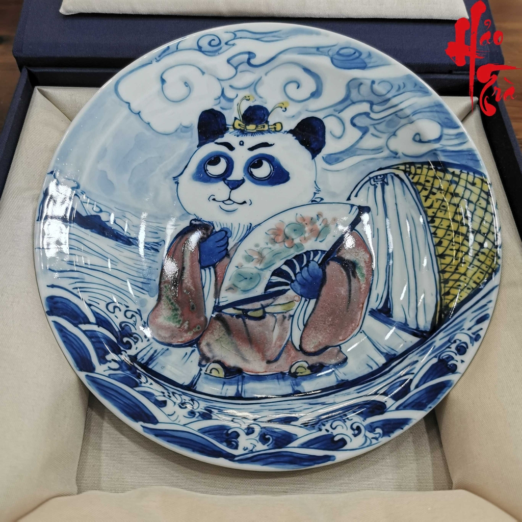Dĩa Vẽ Tay Sứ Cảnh Đức Gấu Trúc đường kính 17 cm - D10